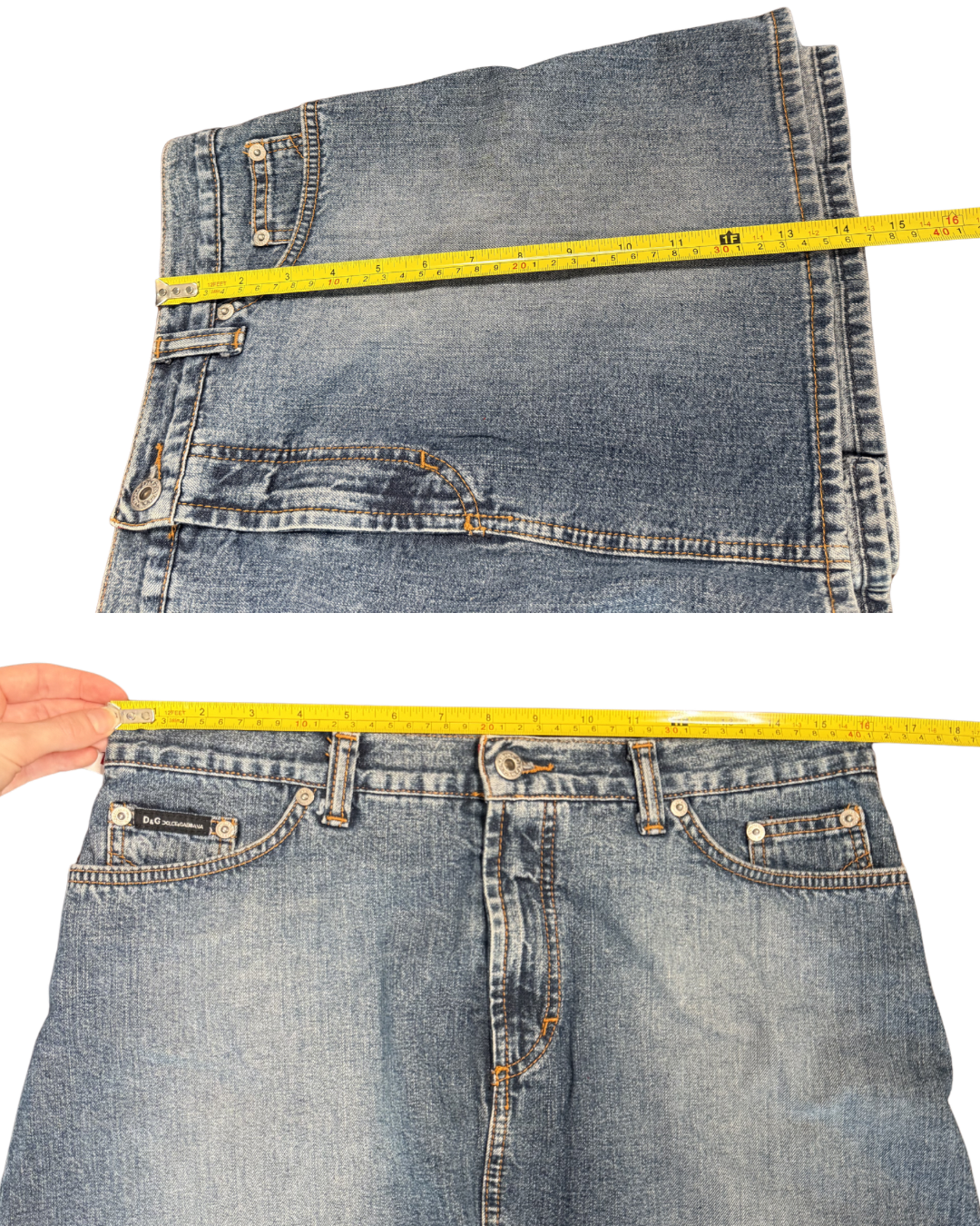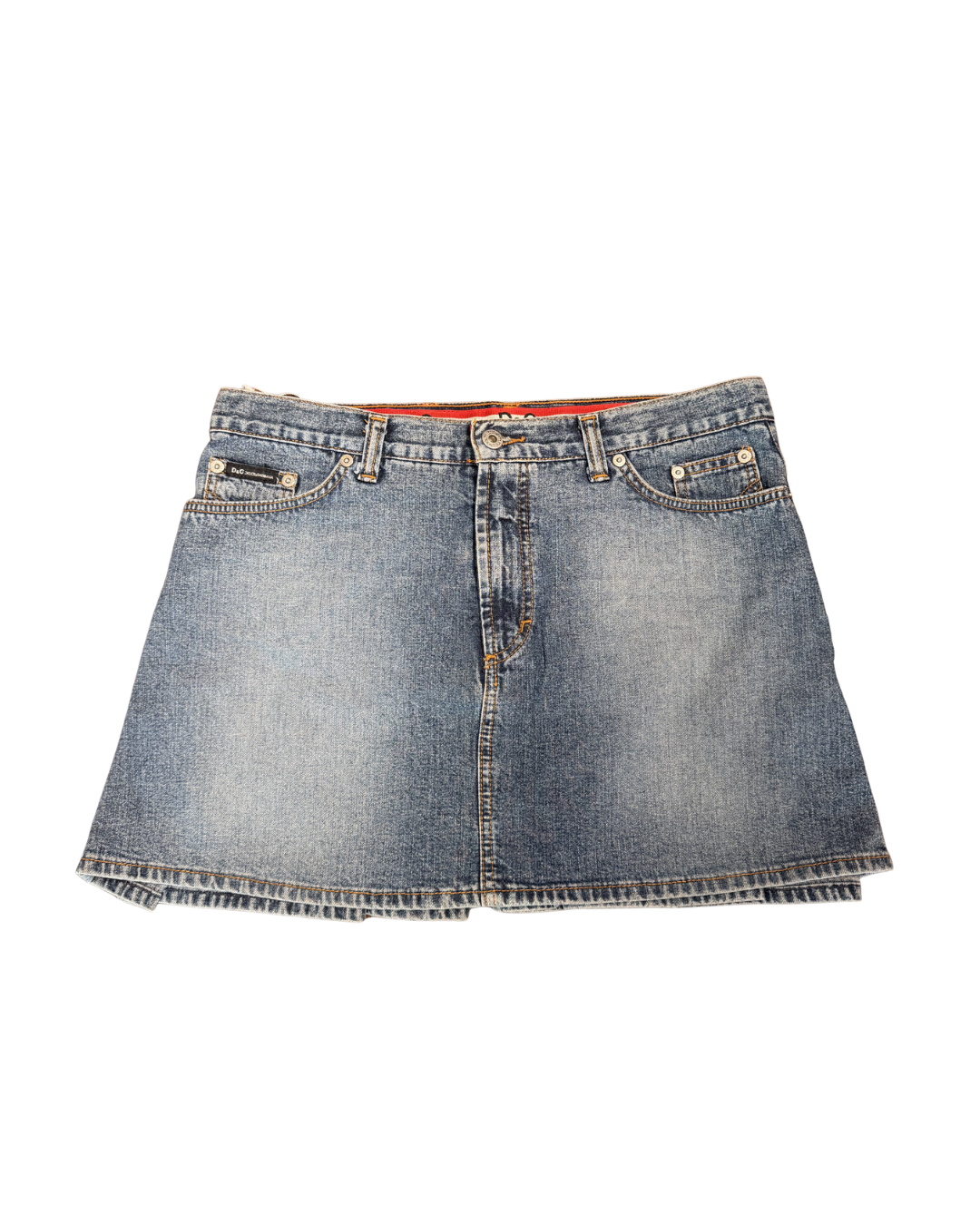 This Dolce & Gabbana denim mini skirt blends classic Italian craftsmanship with playful early-2000s energy. Designed in a perfectly faded blue wash, it features a structured pleated back for that flirty, schoolgirl-inspired silhouette, contrasted by a clean, minimal front. Excellent condition