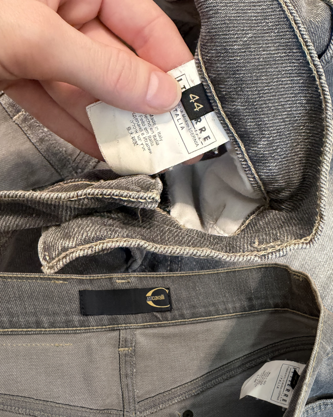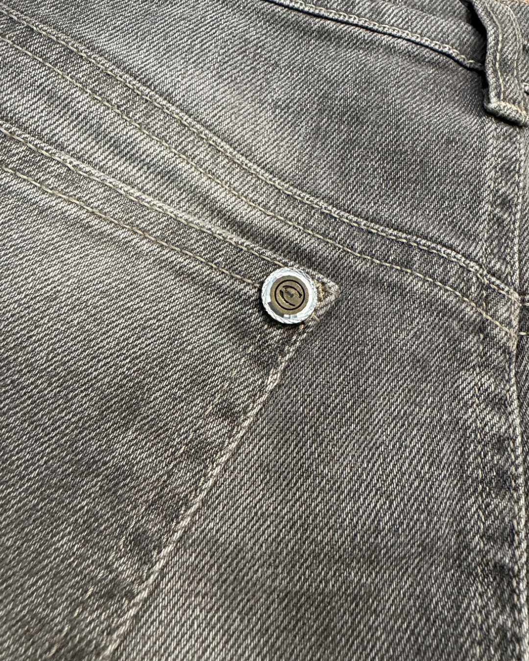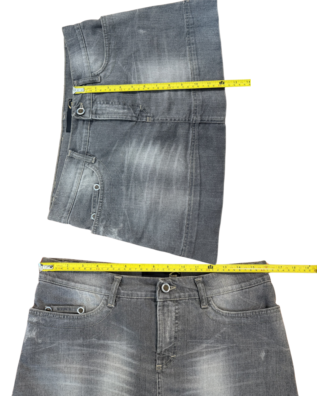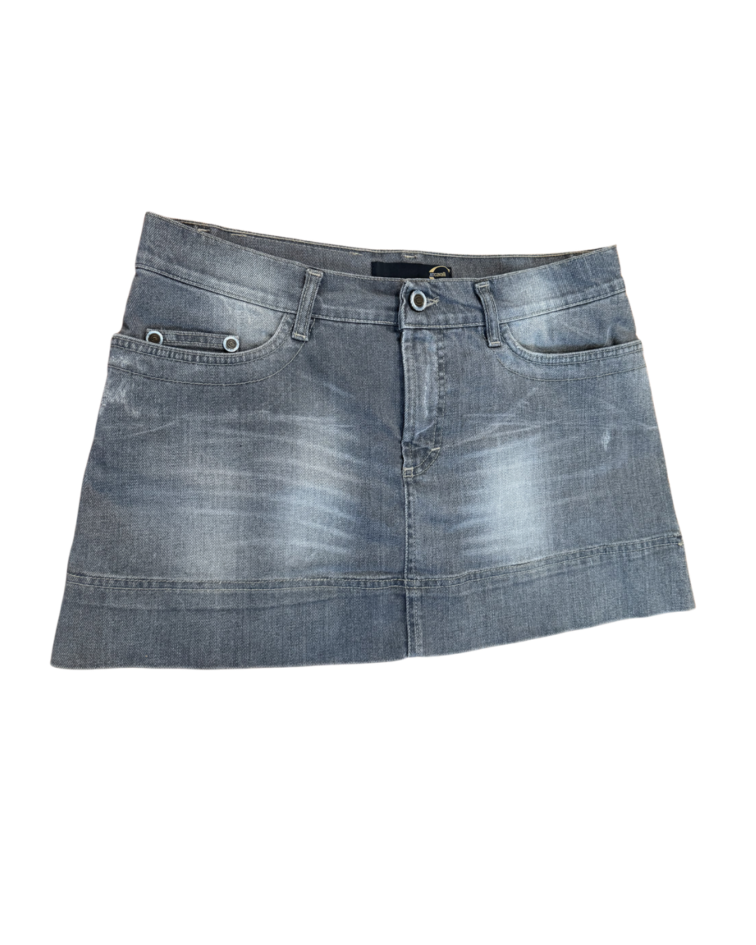 Iconic early 2000s Just Cavalli mini skirt in a perfectly faded grey wash. Features a low-rise fit with subtle distressing and a structured silhouette. The back pocket steals the show with a perfectly rhinestoned “C” logo and Just Cavalli embroidery for that signature glam edge. Excellent condition!
